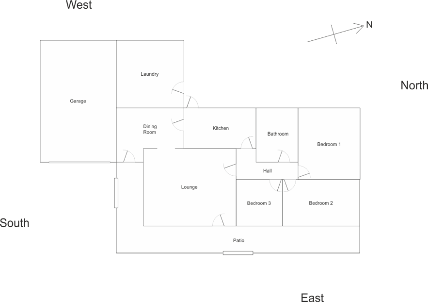 | Lounge | 6.3m x 5.6m space. Carpeted floor, ceiling rose light fitting, wall-mounted electric room heater and wood burner room heater. Three double electric sockets. TV point. Two windows to Patio. Door to Patio, door to Hall. Open archway to Dining Room. |