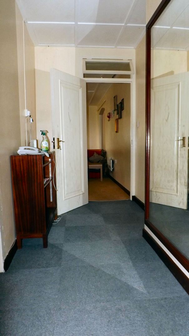 | Hall | L-shaped space with maximum dimensions 4.2m x 2.2m space (1.2m wide). Carpeted floor, one mirrored wall. Ceiling rose light fitting. One double electric socket. Telephone socket, smoke alarm. Doors to Kitchen, Lounge, Bathroom and all three Bedrooms. |